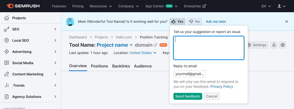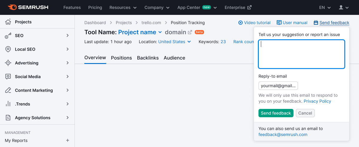 mailtolink: "You can also send us an email at comand_name@semrush.com".