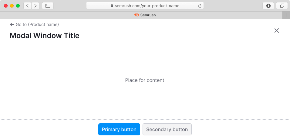 - Fixed header with a title and buttons for going back to the product page and closing the modal.