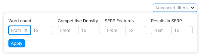 Counter appears after applying the filter. It shows the number of filters applied within the advanced filters group.