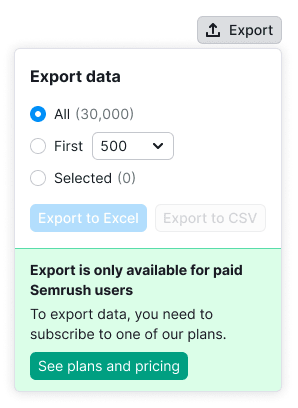 Use this message for such cases: "To export all data, please contact us at {email}". Alternatively, link to a page with a custom report form, displaying the message: "To export all data, please order a custom report."